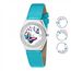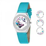 Avec un design audacieux et un éclat fabuleux, la montre Alysson papillon à mouvement tournant est une merveilleuse création qui vous confère une allure de pure élégance. Magnifiée d'un cadran orné en dents de scie merveilleusement expressif, un boîtier en acier inoxydable, un bracelet en cuir bleu en forme de papillons multicolores tournant autour du cadran complètent ce design unique. Magnifiquement modelé, ce design ultra féminisé est agrémenté d'une lunette recouverte d'un micro-pavé de 87 Cristaux scintillants brillants et d'un mouvement Quartz haute fiabilité.