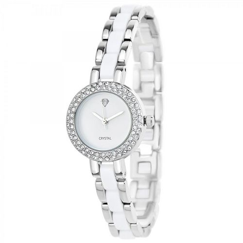 Montre femme ornée de Cristaux scintillantsLargeur cadran : 25mm - Hauteur cadran : 25mm - Epaisseur : 7mmBracelet métal argenté - Longueur : ajustable jusqu'à 20cm - Largeur : 10mm - Fermoir : ClipMatière : LaitonFinition : Plaquage haute résistanceVerre minéralMouvement Quartz haute fiabilité ja