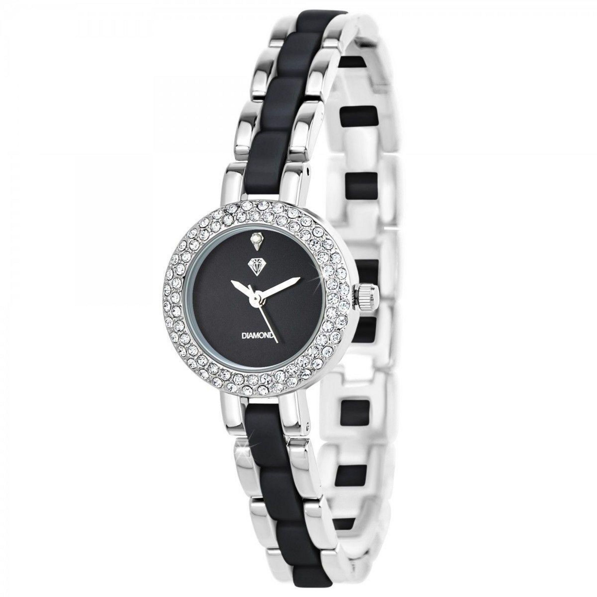 Montre ornée d' un véritable diamant et de Cristaux scintillants par SC Crystal.Diamant rond 58 facettes (0.01 carats).Largeur cadran : 25mm - Hauteur cadran : 25mm - Epaisseur : 7mmBracelet métal argenté - Longueur : ajustable jusqu'à 20cm - Largeur : 10mm - Fermoir : ClipMatière : LaitonFinition