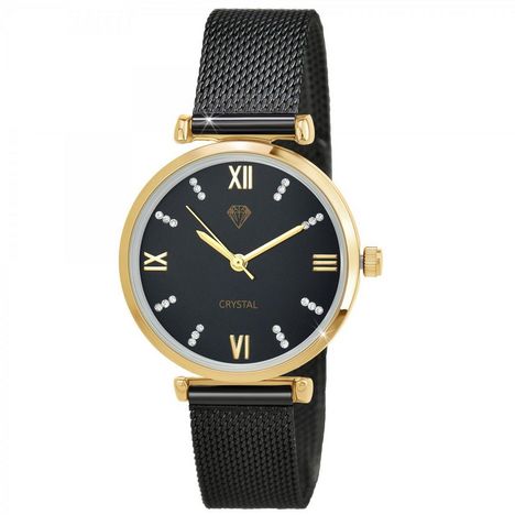 Montre femme ornée de Cristaux scintillantsLargeur cadran : 32mm - Hauteur cadran : 32mm - Epaisseur : 8mmBracelet métal noir - Longueur : ajustable jusqu'à 20cm - Largeur : 14mm - Fermoir : ClipMatière : LaitonFinition : Plaquage haute résistanceVerre minéralMouvement Quartz haute fiabilité japonai