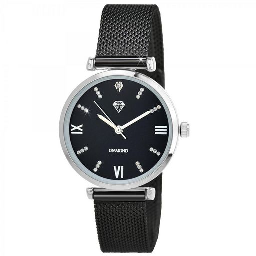 Montre femme ornée de Cristaux scintillantsLargeur cadran : 32mm - Hauteur cadran : 32mm - Epaisseur : 8mmBracelet métal noir - Longueur : de 15 à 23cm - Largeur : 12mm - Fermoir : AimantMatière : LaitonFinition : Plaquage haute résistanceVerre minéralMouvement Quartz haute fiabilité japonaisGaranti
