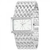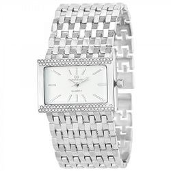 Montre femme ornée de Cristaux scintillantsLargeur cadran : 40mm - Hauteur cadran : 27mm - Epaisseur : 9mmBracelet métal argenté - Longueur : ajustable jusqu' à 20cm - Largeur : 33mm - Fermoir : ClipMatière : LaitonFinition : Plaquage haute résistanceVerre minéralMouvement Quartz haute fiabilité jap