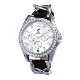 Montre ornée de 44 cristaux scintillants et un véritable diamant par SC CrystalDiamant rond 58 facettes (0.01 carats)Largeur cadran : 41mm - Hauteur cadran : 45mm - Epaisseur : 11mmBracelet cuir noir - Longueur : de 16 à 20cm - Largeur : 12mm - Fermoir : Boucle ardillonCompteurs décoratifs, non fon