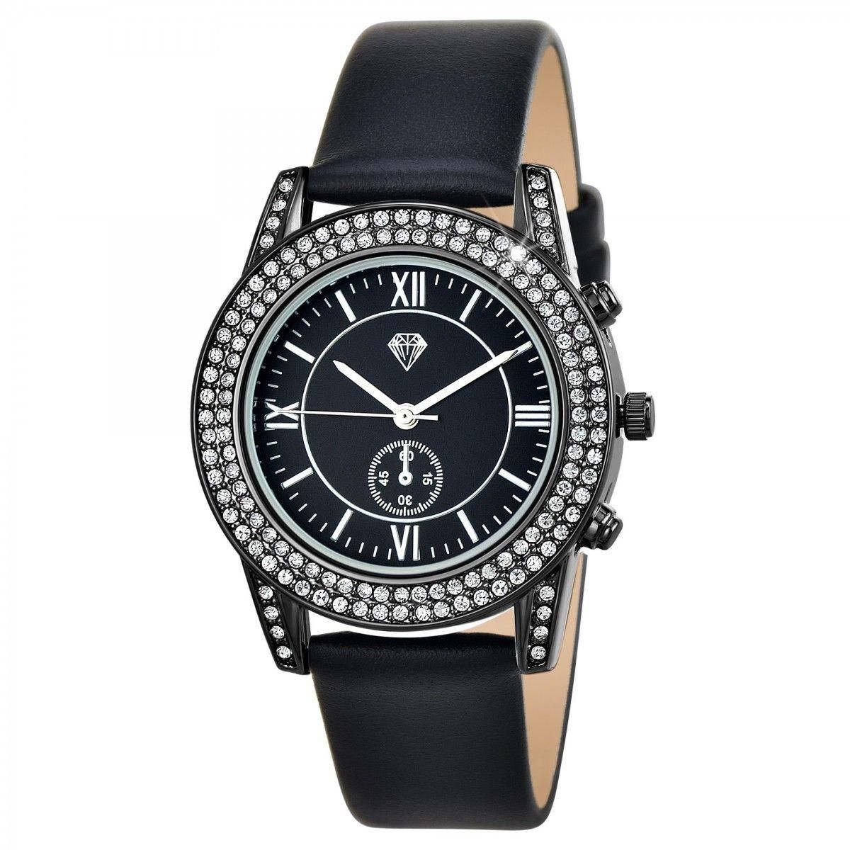 Montre femme ornée de Cristaux scintillants par SC CrystalLargeur cadran : 36mm - Hauteur cadran : 36mm - Epaisseur : 10mmBracelet cuir noir - Longueur : de 16,5 à 20,5cm - Largeur : 16mm - Fermoir : Boucle ardillonMatière : LaitonFinition : Plaquage haute résistanceVerre minéralMouvement Quartz h