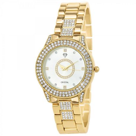 Montre femme ornée de Cristaux scintillants par SC CrystalLargeur cadran : 34mm - Hauteur cadran : 34mm - Epaisseur : 9mmBracelet métal doré - Longueur : ajustable jusqu'à 20cm - Largeur : 16mm - Fermoir : ClipMatière : LaitonFinition : Plaquage haute résistanceVerre minéralMouvement Quartz haute fi