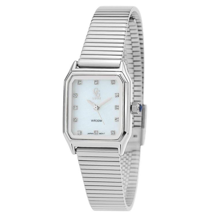 Montre femme ornée de Cristaux scintillants par SC CrystalLargeur cadran : 22mm - Hauteur cadran : 28mm - Epaisseur : 7mmBracelet métal argenté - Longueur : ajustable jusqu'à 20cm - Largeur : 10mm - Fermoir : ClipMatière : LaitonFinition : Plaquage haute résistanceVerre minéralMouvement Quartz haute