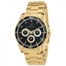 Montre homme par Pascal SzermanLargeur cadran : 46mm - Hauteur cadran : 46mm - Epaisseur : 12mmBracelet acier doré- Longueur : ajustable jusqu' à 26cm - Largeur : 22mm - Fermoir : Boucle déployante doubleCompteurs décoratifs non fonctionnelsMatière : LaitonFinition : Plaquage haute résistanceVerre m