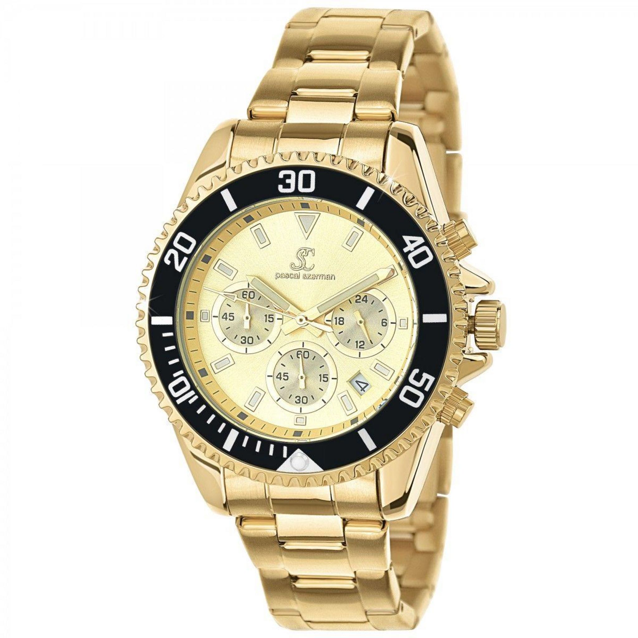 Montre multifonction pour hommeDateurLargeur cadran : 46mm - Hauteur cadran : 52mm - Epaisseur : 13mmBracelet acier doré - Longueur : ajustable jusqu' à 21cm - Largeur : 18mm - Fermoir : Boucle déployante doubleMatière : LaitonFinition : Plaquage haute résistanceVerre minéralMouvement Quartz haute f
