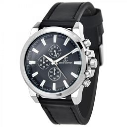 Montre homme par Pascal SzermanLargeur cadran : 48mm - Hauteur cadran : 44mm - Epaisseur : 12mmBracelet cuir noir - Longueur : de 18 à 22cm - Largeur : 21mm - Fermoir : Boucle ardillonCompteurs décoratifs non fonctionnelsMatière : LaitonFinition : Plaquage haute résistanceVerre minéralMouvement Qu