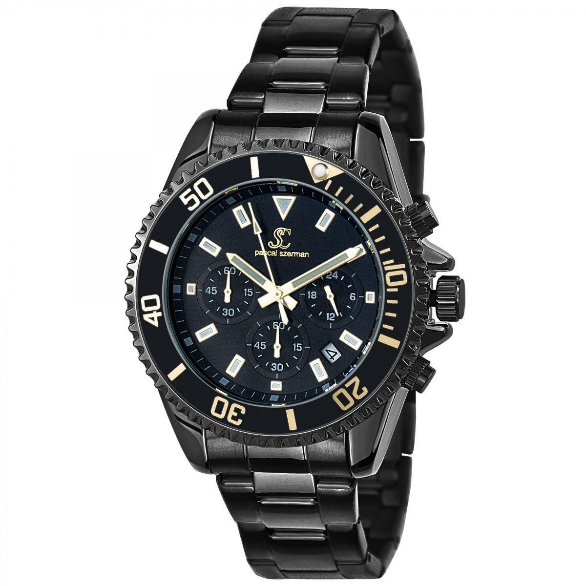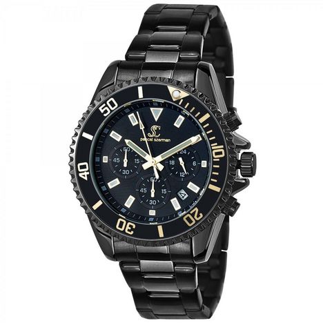 Montre multifonction pour hommeDateurLargeur cadran : 46mm - Hauteur cadran : 52mm - Epaisseur : 13mmBracelet acier noir- Longueur : ajustable jusqu' à 21cm - Largeur : 18mm - Fermoir : Boucle déployante doubleMatière : LaitonFinition : Plaquage haute résistanceVerre minéralMouvement Quartz haute fi