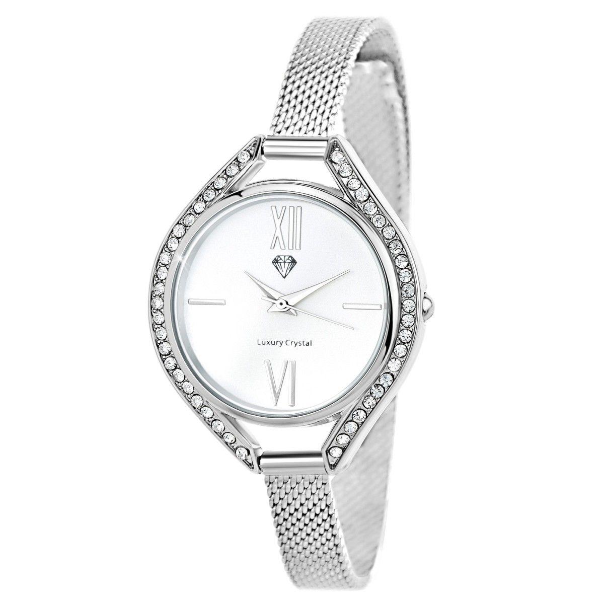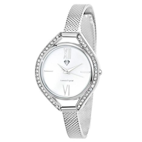 Montre ornée de 58 Cristaux Scintillants par SC CrystalLargeur cadran : 34mm - Hauteur cadran : 40mm - Epaisseur : 8mmBracelet métal argenté - Longueur : de 15 à 19cm - Largeur : 8mm - Fermoir : ClipMatière : LaitonFinition : Plaquage haute résistanceVerre minéralMouvement Quartz haute fiabilité jap