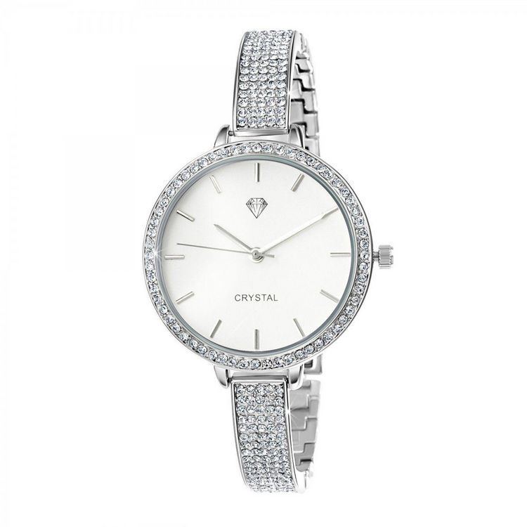 Montre femme ornée de Cristaux scintillantsLargeur cadran : 36mm - Hauteur cadran : 36mm - Epaisseur : 9mmBracelet métal argenté - Longueur : ajustable jusqu'à 19cm - Largeur : 10mm - Fermoir : ClipMatière : LaitonFinition : Plaquage haute résistanceVerre minéralMouvement Quartz haute fiabilité jap