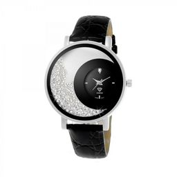 Montre ornée d'un véritable diamant et de plus de 130 cristaux scintillants par SC CrystalDiamant rond 58 facettes (0.01 carats).Largeur cadran : 41mm - Hauteur cadran : 41mm - Epaisseur : 12mmBracelet cuir noir - Longueur : de 17 à 21cm - Largeur : 18mm - Fermoir : Boucle ardillonMatière : LaitonF