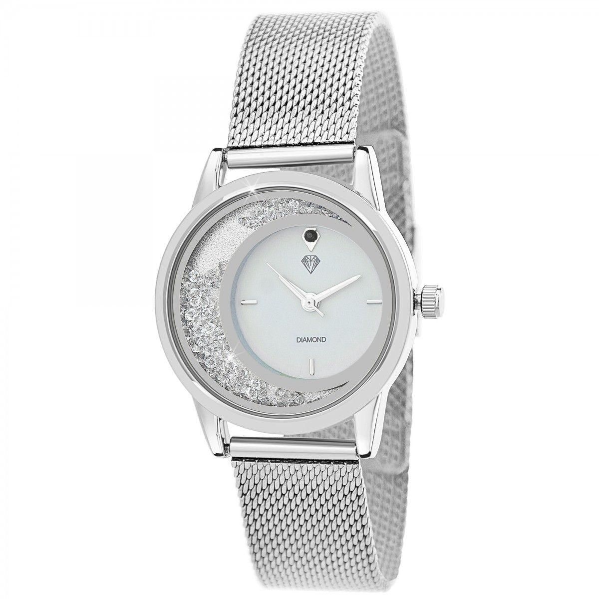 Montre femme ornée d'un diamant noir et de cristaux scintillants par SC CrystalLargeur cadran : 31mm - Hauteur cadran : 31mm - Epaisseur : 8mmBracelet métal argenté - Longueur : ajustable jusqu'à 21cm - Largeur : 15mm - Fermoir : ClipMatière : LaitonFinition : Plaquage haute résistanceVerre minéralM