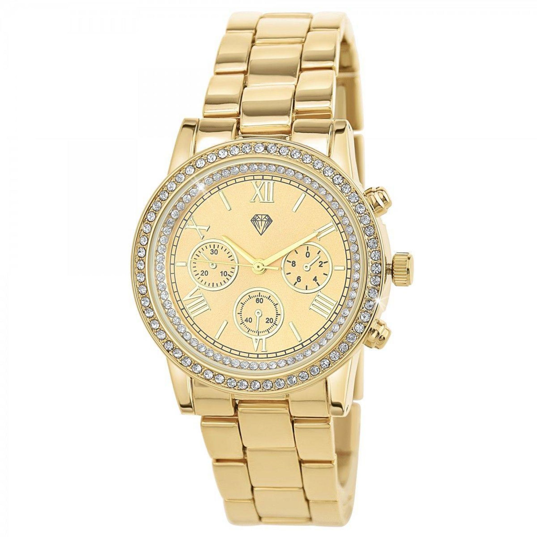 Montre femme ornée de Cristaux scintillants par SC CrystalLargeur cadran : 38mm - Hauteur cadran : 38mm - Epaisseur : 12mmBracelet métal doré - Longueur : ajustable jusqu'à 20cm - Largeur : 18mm - Fermoir : Boucle déployante doubleMatière : LaitonFinition : Plaquage haute résistanceVerre minéralMouv
