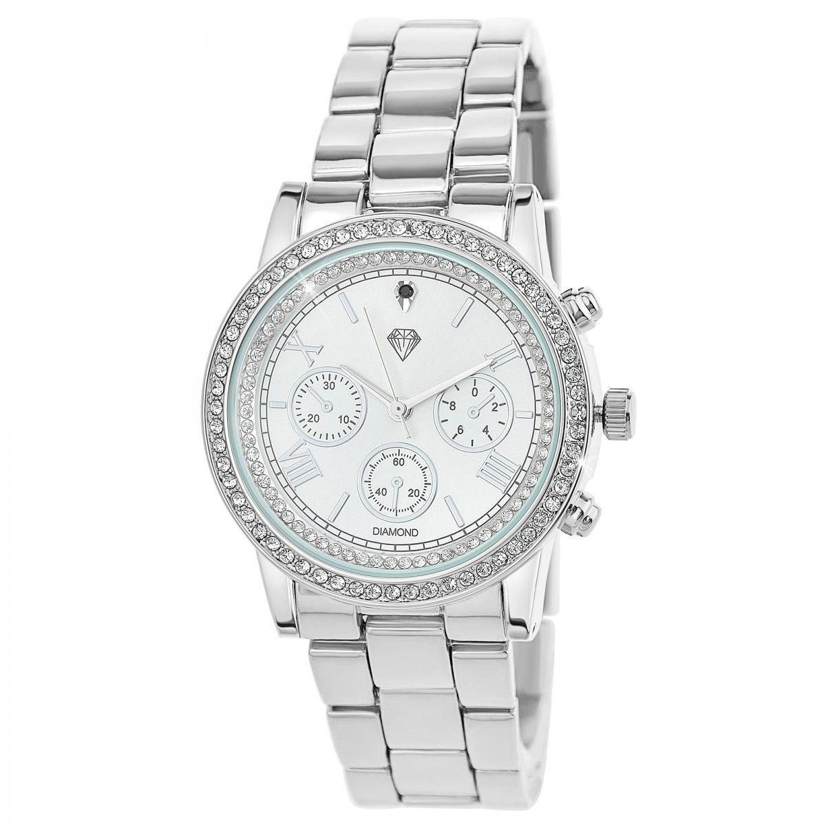 Montre ornée d' un véritable diamant et de Cristaux scintillants par SC Crystal.Diamant rond 58 facettes (0.01 carats).Largeur cadran : 38mm - Hauteur cadran : 38mm - Epaisseur : 12mmBracelet métal - Longueur : ajustable jusqu'à 20cm - Largeur : 18mm - Fermoir : Boucle déployante doubleMatière : Lai