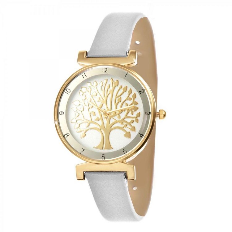 Montre femmeLargeur cadran : 34mm - Hauteur cadran : 34mm - Epaisseur : 9mmBracelet synthétique blanc - Longueur : de 15 à 18cm - Largeur : 14mm - Fermoir : Boucle ardillonMatière : LaitonFinition : Plaquage haute résistanceVerre minéralMouvement Quartz haute fiabilité japonaisGarantie internationa