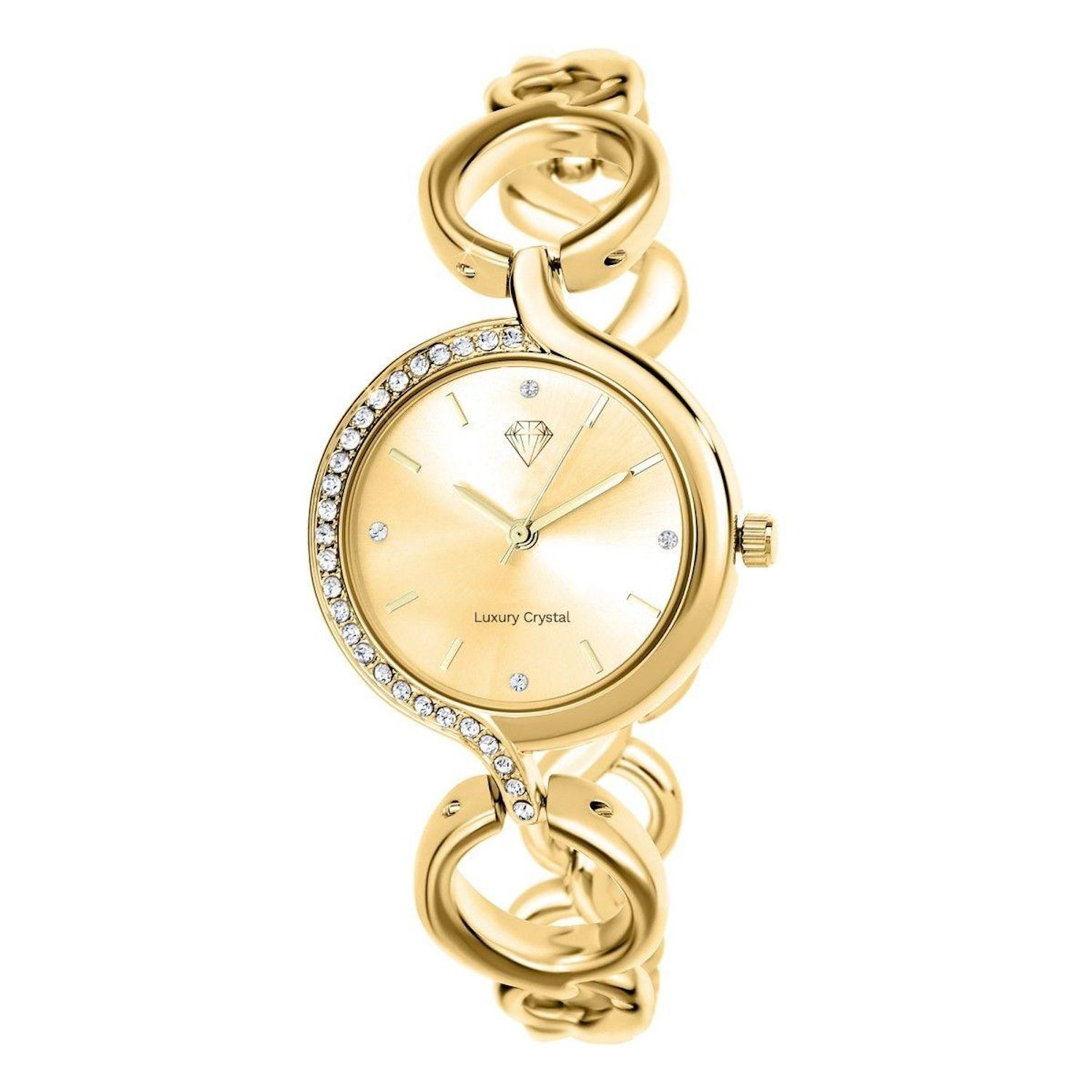 Montre SC Crystal® ornée de cristauxLargeur cadran : 33mm - Hauteur cadran : 33mm - Epaisseur : 10mmBracelet métal doré - Longueur : de 16 à 20cm - Largeur : 12mm - Fermoir : ClipMatière : LaitonFinition : Plaquage haute résistanceVerre minéralMouvement Quartz haute fiabilité japonaisGarantie intern