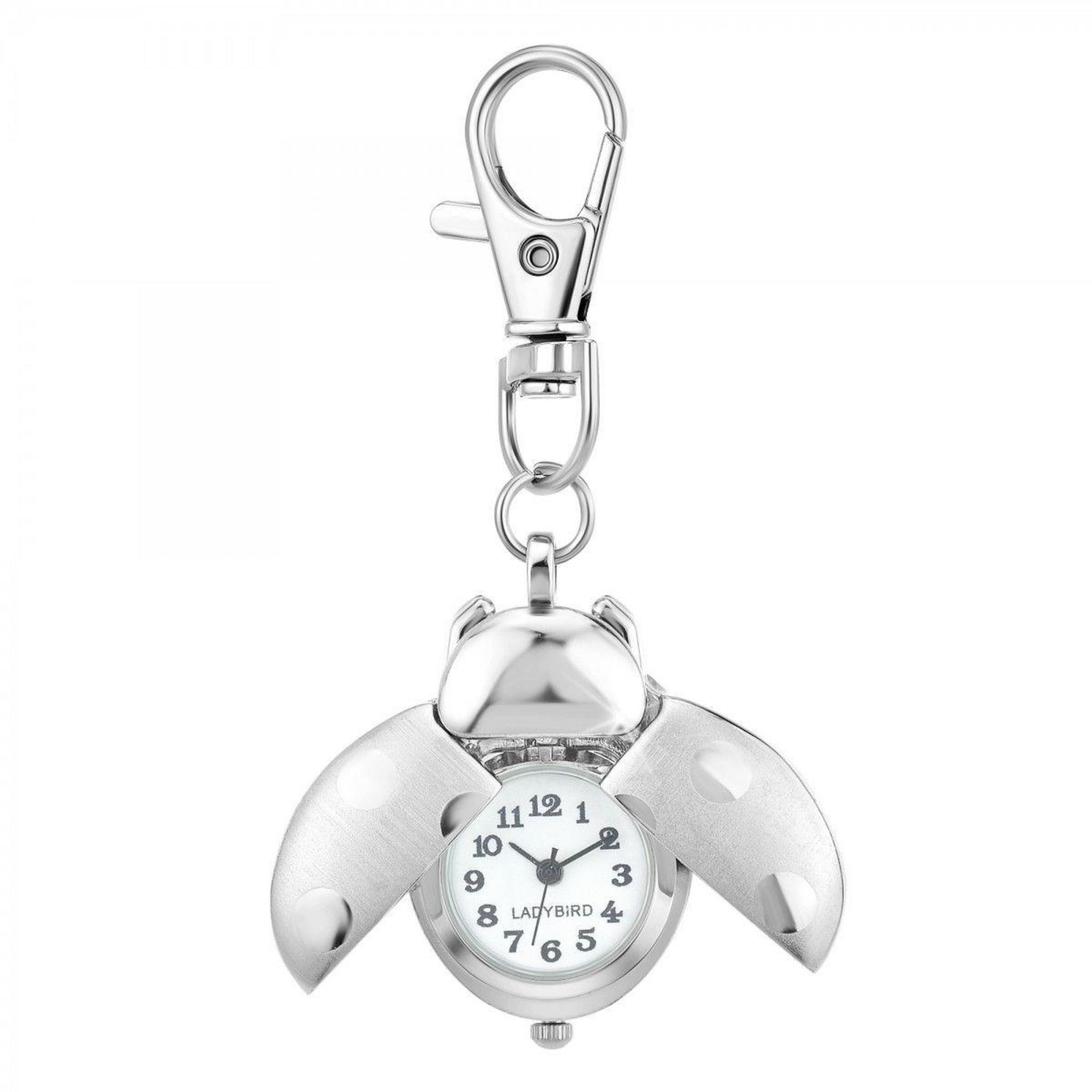 Montre porte-clé coccinelleLargeur : 25mm - Hauteur : 40mm - Epaisseur : 12mmHauteur totale : 80mmMétal argentéMatière : LaitonFinition : Plaquage haute résistanceVerre minéralMouvement Quartz haute fiabilité japonaisGarantie internationale 2 ans