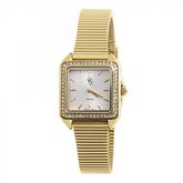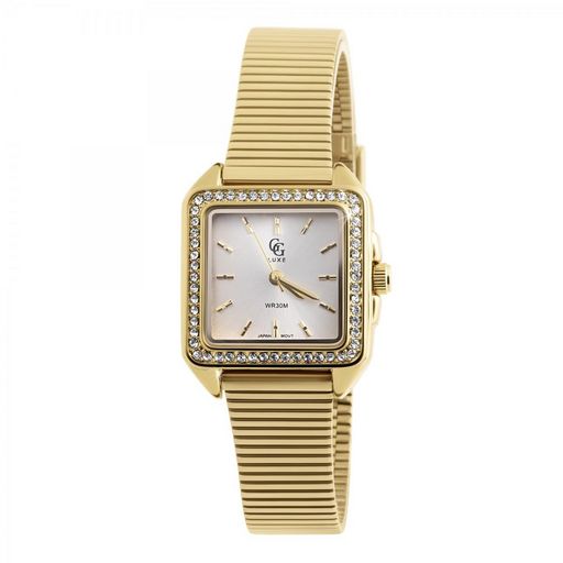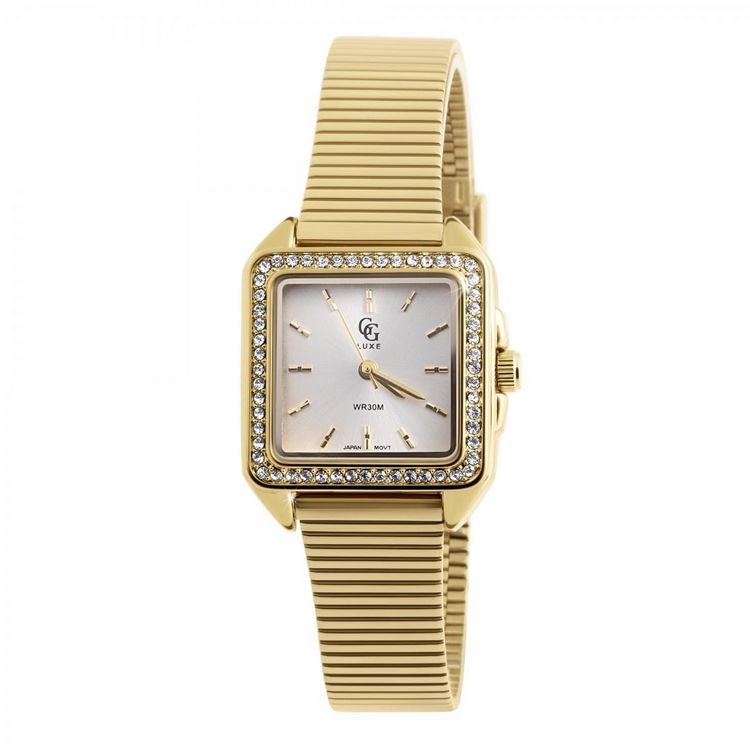 Montre femme ornée de Cristaux scintillantsLargeur cadran : 29mm - Hauteur cadran :34mm - Epaisseur : 8mmBracelet métal doré - Longueur : ajustable jusqu' à 21cm - Largeur : 15mm - Fermoir : ClipMatière : LaitonFinition : Plaquage haute résistanceVerre minéralMouvement Quartz haute fiabilité japonai
