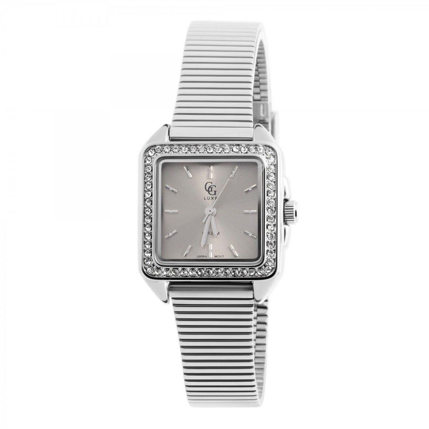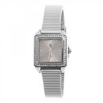 Montre femme ornée de Cristaux scintillantsLargeur cadran : 29mm - Hauteur cadran :34mm - Epaisseur : 8mmBracelet métal argenté - Longueur : ajustable jusqu' à 21cm - Largeur : 15mm - Fermoir : ClipMatière : LaitonFinition : Plaquage haute résistanceVerre minéralMouvement Quartz haute fiabilité japo