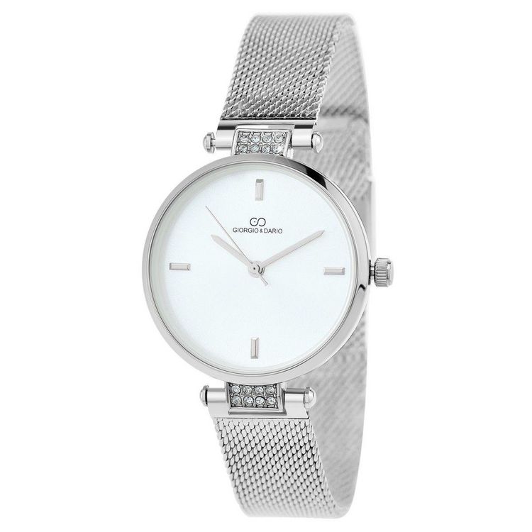 Montre femme ornée de Cristaux scintillantsLargeur cadran : 32mm - Hauteur cadran :32mm - Epaisseur : 8mmBracelet métal argenté - Longueur : ajustable jusqu' à 20cm - Largeur : 14mm - Fermoir : ClipMatière : LaitonFinition : Plaquage haute résistanceVerre minéralMouvement Quartz haute fiabilité japo