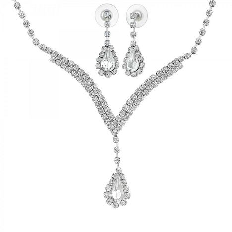 Parure par SC CrystalOrnée de Cristaux scintillants.Alliage résistant avec plaquage haute résistance.Longueur collier : 29cm (+15cm de rallonge)Dimensions pendentif : 15x10x4mmFermoir : mousqueton.Hauteur totale boucles d'oreilles : 28mmDimensions pendentif goutte : 15x10x4mmAttache de type piercing