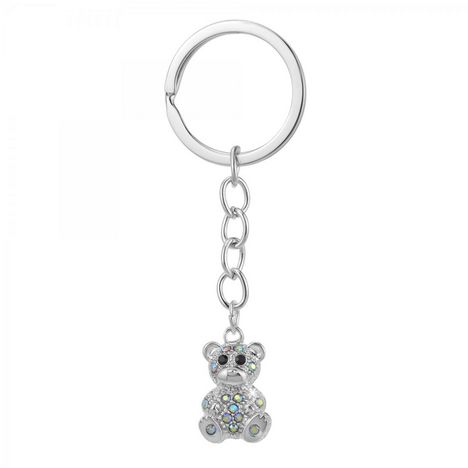 Porte-clé ourson orné de zirconiumAlliage résistant avec plaquage haute résistance.Hauteur totale: 8,5 cmDimensions pendentif : 20x15x10 mmDimensions mousqueton : 30x30 mm