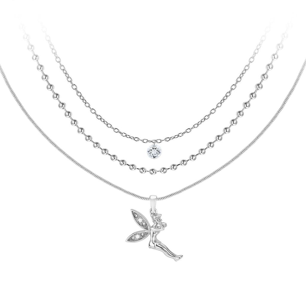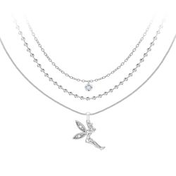 Collier fée SC Crystal® orné de cristauxAlliage résistant avec plaquage haute résistance.Dimensions : 24 x 21 mm.Longueur collier : 41 cm (+ 4cm de rallonge).Fermoir à mousqueton.Collier SC Crystal.Acier inoxydable.Largeur boules : 2,5mmLongueur collier : 35cm (+7cm de rallonge)Fermoir : mousquetonC