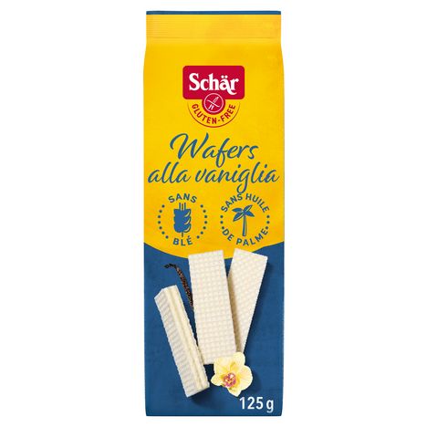 La Wafers Alla Vaniglia sans gluten Schär est une délicieuse gaufrette à la vanille. Un biscuit croustillant et à la texture légère pour toutes les pauses gourmandes. Sans blé, sans conservateurs, sans huile de palme.