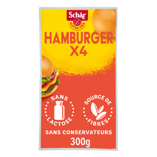 Découvrez les incomparables Pain Hamburger sans gluten Schär. Des pains 100% moelleux, sans lactose, sans conservateur et sans huile palme. Ils seront idéals pour préparer vos hamburgers selon vos envies. Sans blé, sans lactose, sans conservateurs.