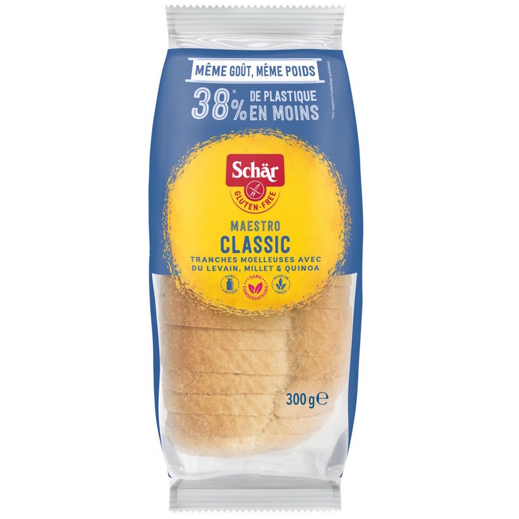 Le pain tranché Maestro classique sans gluten Schär vous offre un goût délicieux et authentique. Un pain moelleux préparé par nos boulangers à partir de levain et de graines nobles soigneusement sélectionnées. Sans blé, sans lactose, sans conservateurs.