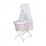 Berceau à roulettes Babsi osier blanc coeurs roses 55x90x140cm