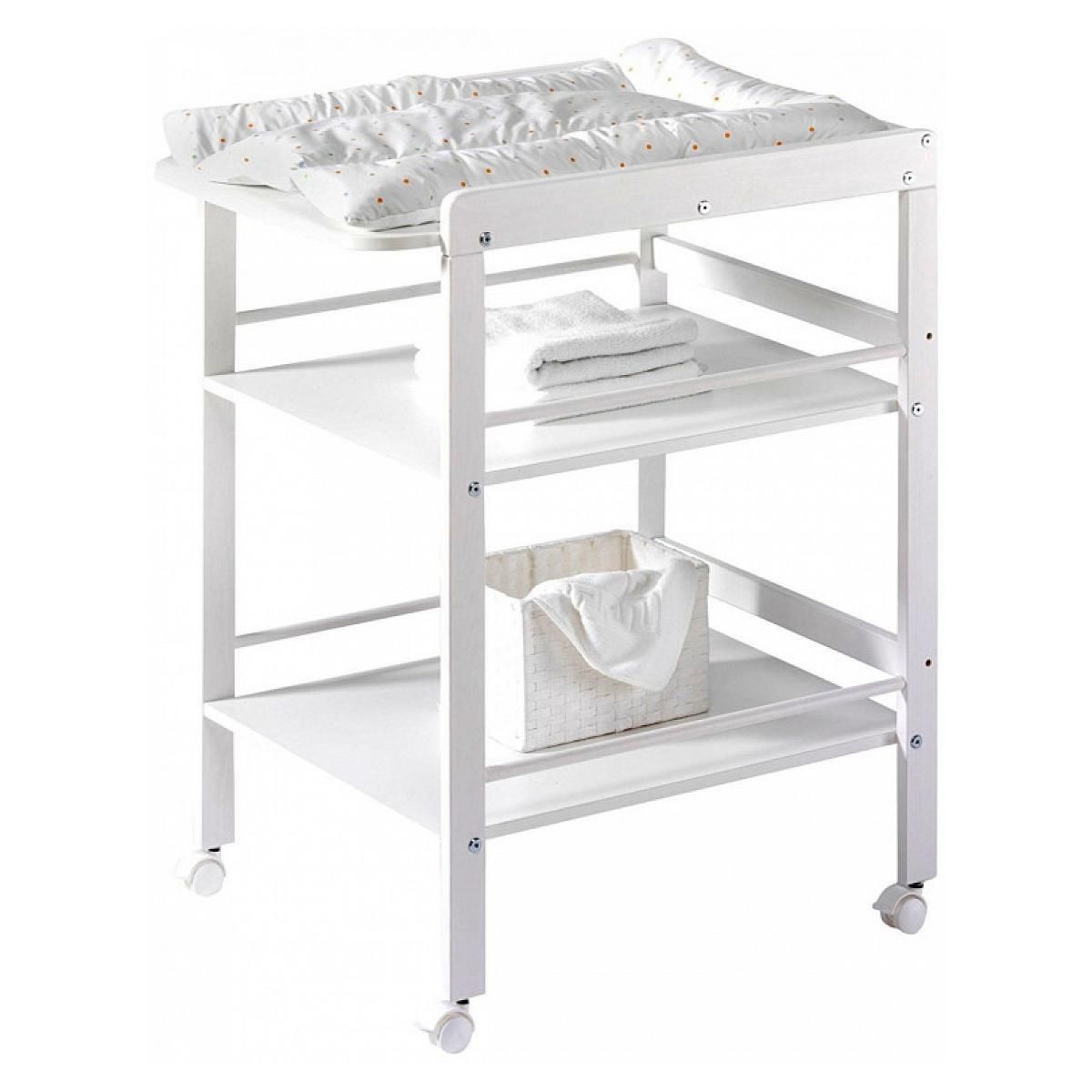En savoir +Cette belle table à langer en pin massif blanc vous offre un bel espace pour changer votre bébé en toute sécurité. Elle est équipée de 2 étagères pour vous offrir un espace de rangement. Ses roulettes vous permettent de la déplacer facilement. Livré sans aucun accessoire ni maelas à langer