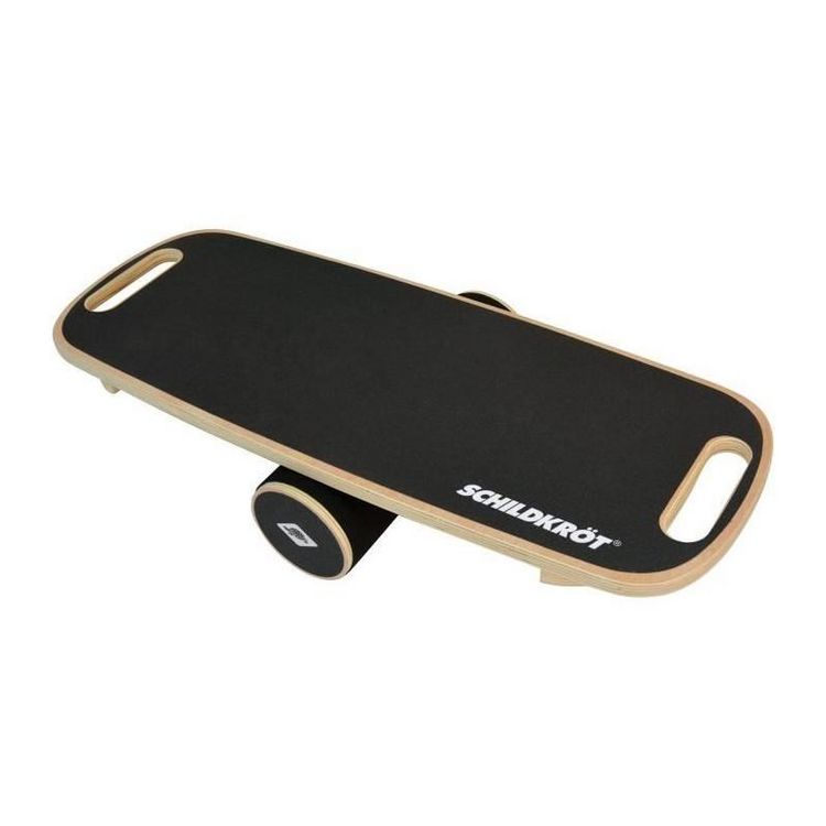 La nouvelle planche d'équilibre Wooden Balance Board de Schildkröt en bois de placage entraîne coordination et équilibre. Style surf, snow et skateboard (73,5 x 28cm), surface antidérapante, rouleau de Ø 11cm, 35cm. Renforce musculature du tronc, améliore posture. Instructions incluses, charge maximale : 120kg.