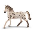 Les étalons Knabstrup et les étalons Appaloosa se ressemblent énormément car ils arborent tous les deux une robe mouchetée. Ces races équines se sont cependant développées séparément. La région d'origine du Knabstrup est le Danemark, alors que l'Appaloosa provient des États-Unis d'Amérique. Le Knabstrup est non seulement apprécié en raison de sa robe, mais également parce qu'il s'agit d'un cheval de dressage talentueux. Les figurines Schleich® sont toutes sculptées avec des détails plein de réalisme pour des moments de jeu pédagogiques.1x étalon Knabstrup
