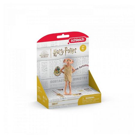 Dobby? l'elfe de maison est vêtu d'une simple taie d'oreiller, et cache ses mains derrière son dos. Avec ses grandes oreilles, son nez pointu et ses grands yeux verts, il a l'air très gentil.
