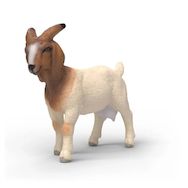 Deux bonds pleins d'audace, et voilà déjà la chèvre Boer en haut de la butte. Cette jolie chèvre au pelage blanc et à la tête brune est une grimpeuse extrêmement agile. Aucun terrain n'est trop escarpé pour elle ! De plus, étant capable de s'adapter facilement à n'importe quel environnement, elle se
