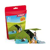 C'est parti pour le camping avec Kim ! La grande tente peut être décorée avec de jolis autocollants. La nuit, Kim se blottit dans son sac de couchage et son chiot Maltipoo dans son panier. À la nuit tombée, Kim allume sa lampe de poche. Qui a envie de les rejoindre ?