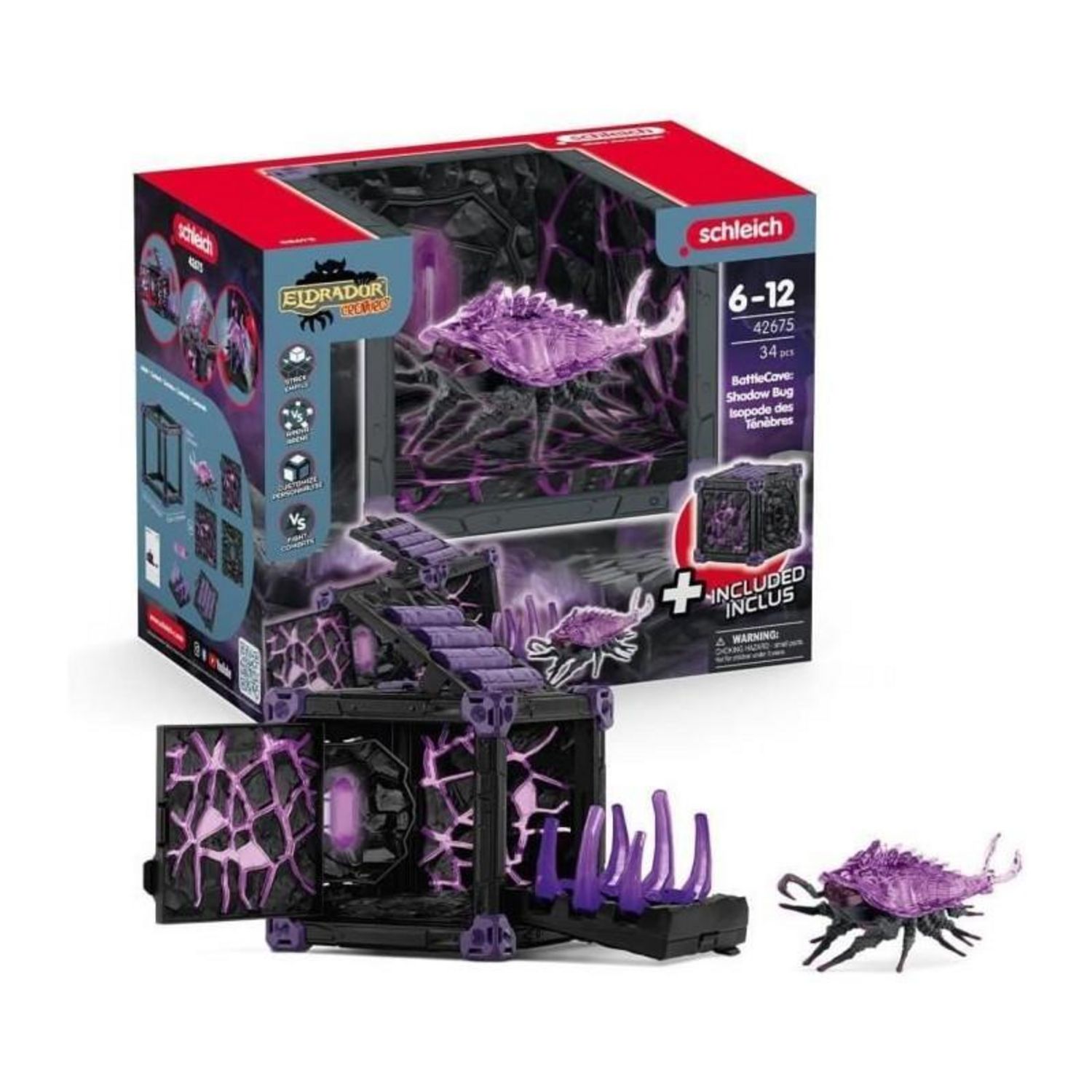 Le produit BattleCave Isopode des Ténèbres, référence SCHLEICH 42675, possède le code EAN 4059433771762. Il est conçu pour être compatible avec d'autres extensions de l'arène Eldrador Creatures, permettant aux enfants de créer des environnements de jeu complexes et variés.