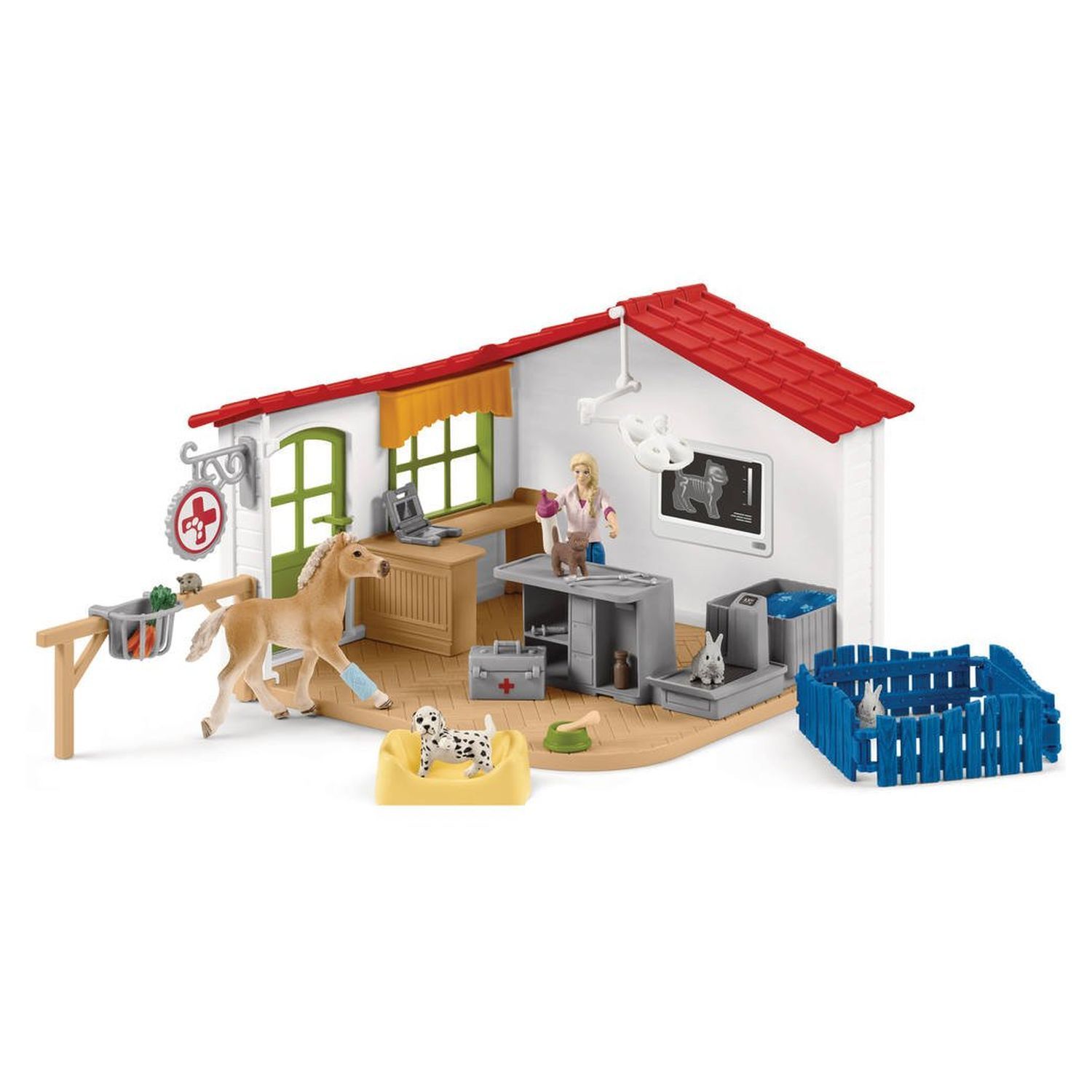 Amuse toi avec le cabinet vétérinaire ! Tu as tout pour créer de superbes scènes de jeu et soigner tous les animaux du mieux possible.