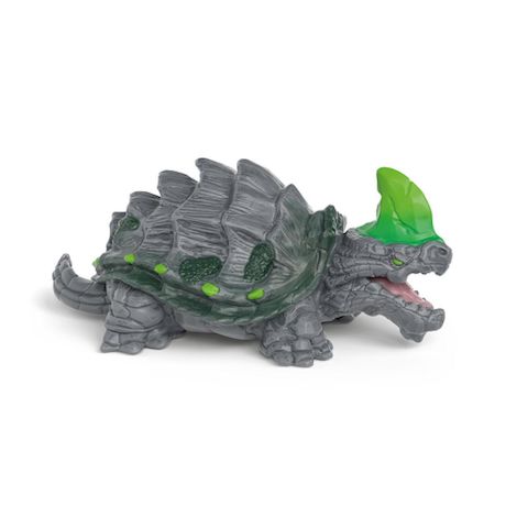 Les yeux verts de la Tortue de Pierre ont l'air vraiment menaçant. Déjà très âgée, elle est probablement l'une des plus anciennes habitantes d'ELDRADOR®. Elle préfère éviter les duels et vit la plupart du temps dans l'une des nombreuses cavernes du Monde de la Pierre, qu'elle connaît comme sa poche. Cependant, il vaut mieux toujours rester prudent : elle n'hésitera pas à utiliser sa corne verte éclatante sur son crâne pour menacer quiconque se met en travers de son chemin. Et elle peut aussi mordre ! Avec sa carapace épaisse en pierre, elle est invincible. Il est donc plus sage de la laisser tranquille.