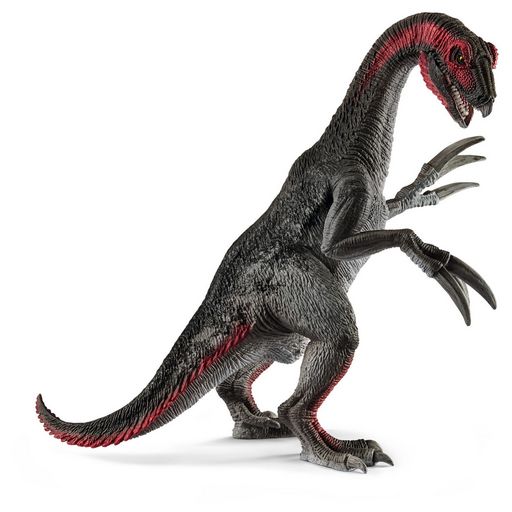 Cette figurine Schleich modélisée en détail et soigneusement peinte à la main représente le Thérizinosaure. De tous les animaux ayant jamais existés sur terre, le thérizinosaure est celui aux griffes probablement les plus longues. Il les utilisait pour creuser, attraper, transpercer et peler des écorces. Il a vécu vers la fin de l’ère des dinosaures, en même temps que d’autres herbivores tels que le kentrosaure et le pentacératops.