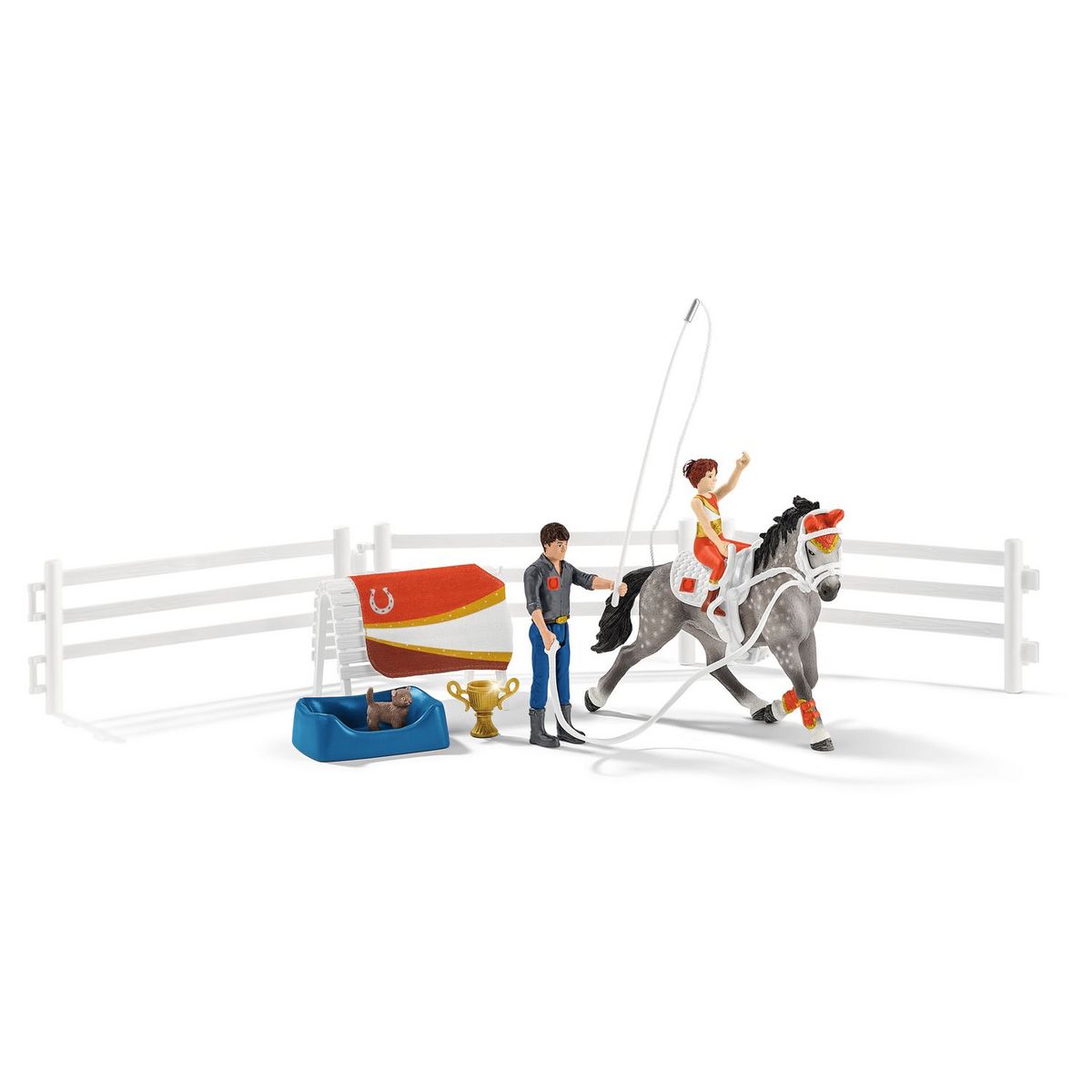 - Grâce à ce kit de voltige équestre Horse Club de Schleich, la petite fille Mia peut se préparer pour son premier concours de manière optimale