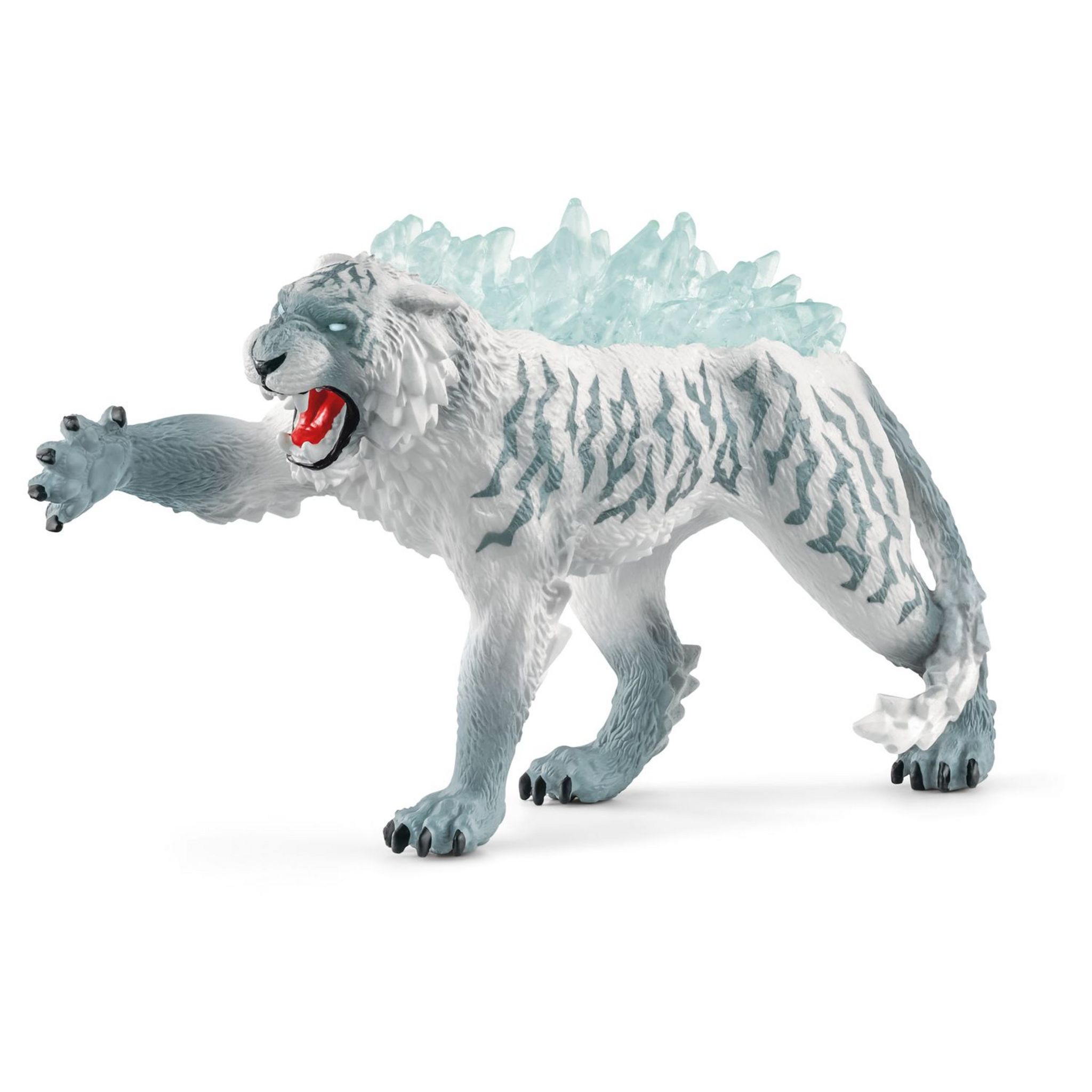Brrr, il fait un froid polaire ! Notre Tigre de glace de l’univers thématique Eldrador® de Schleich® souffle de l’air glacial et crée ainsi une surprise à glacer le sang. Les cristaux de glace qui parcourent son dos protègent ce félin magique des attaques par l’arrière. En effet, les adversaires qui veulent le prendre en traître sont congelés sur-le-champ. Le tigre de glace peut donc marquer une pause.
