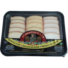 Fromage fumé : Lait, sel, ferments, coagulants, colorant : rocou, conservateur : natamycine Fromage de chèvre : Lait de chèvre, ferments, sel, présure, pénicillium candidum, colorant : rocou, conservateurs : natamycine et lysozyme Raclette de Savoie : Lait, sel, ferments, présure