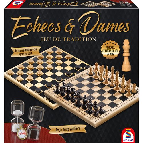 Schmidt Jeu Échecs/Dames en bois avec Sabliers