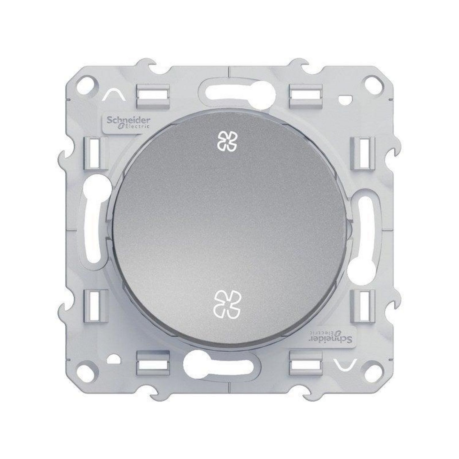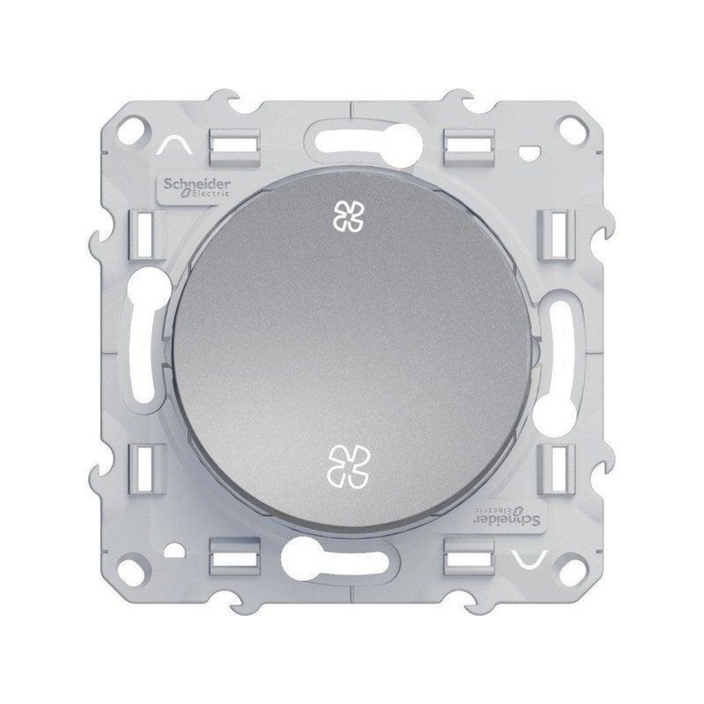 Nom du produit: Commande VMC Marque du produit: SCHNEIDER ELECTRIC Nom de la série: Odace Type de produit: A assembler Couleur: Aluminium Matière principale: Plastique Finition du produit: Mat Nombre de modules: 1 Objet connecté: Non Type de fixation: A vis (griffes vendues séparemment) Hauteur (e
