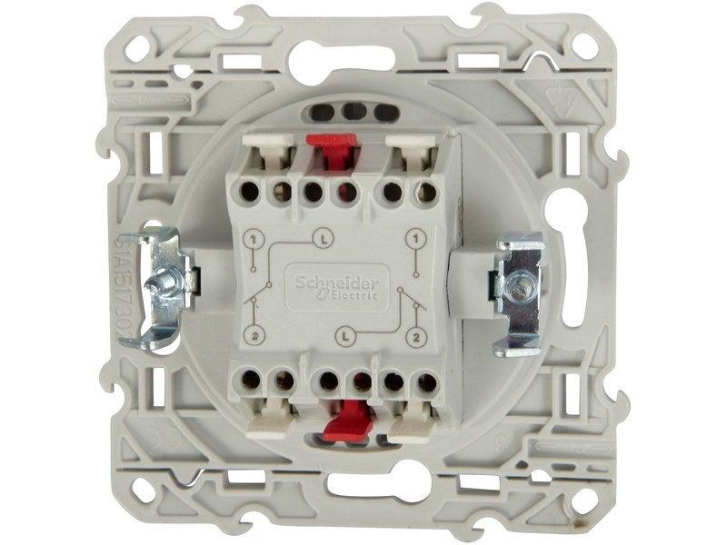 Nom du produit : Double interrupteur va-et-vientMarque du produit : SCHNEIDER ELECTRICNom de la série : OdaceType de produit : A assemblerCouleur : BlancMatière principale sur la masse totale du produit : PolycarbonateFinition du produit : BrillantNombre de modules : 1Type de fixation : A vis (grif