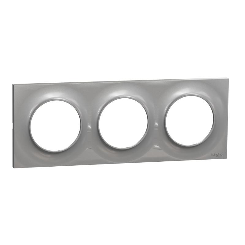 Plaque ODACE Styl aluminium 3 postes horizontal vertical entraxe 71mm SCHNEIDER ELECTRIC S520706E